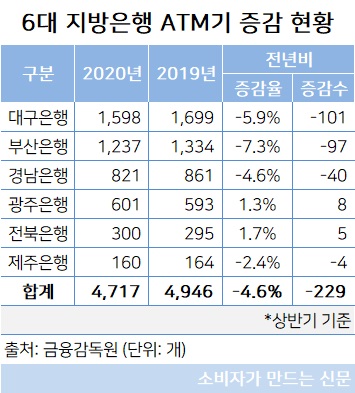이처럼 지방 은행들의 국내 점포와 ATM 감축은 비대면 거래 확산에 따른 불가피한 선택으로 해석된다.