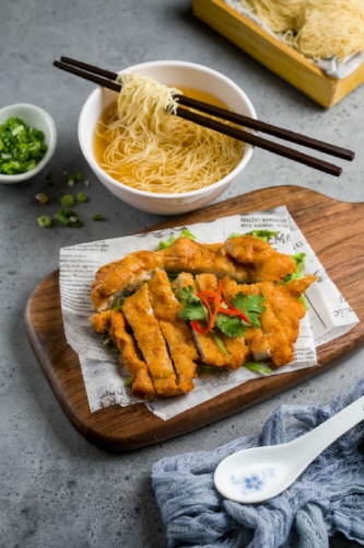신메뉴 ‘홍콩식 파이구 면’은 홍콩 사람들이 즐겨먹는 메뉴 중 하나로 돈등심을 튀겨 특제 탕면과 함께 곁들여 먹는 요리다.