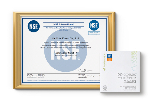 뉴스킨 코리아는 이번 NSF 스포츠 인증을 통해 아무 식품이나 섭취할 수 없는 스포츠 선수들도 안심하고 뉴스킨 파마넥스의 대표 건강기능식품 유스스팬3를 섭취하며 건강관리를 할 수 있게 됐다고 말했다.