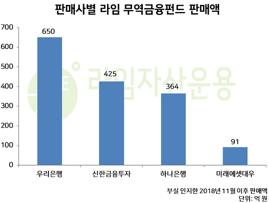 우리은행, 신한금융투자, 하나은행, 미래에셋대우(판매규모 순) 등 4개사는 27일 오후 임시 이사회를 열고 지난 7월 초 금감원 분조위가 권고한 라임 무역금융펀드 판매액에 대한 전액 배상안을 수용하기로 결정했다.