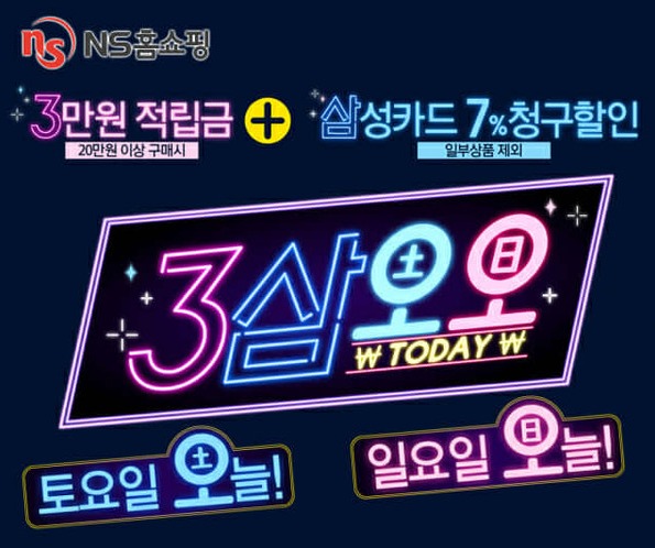 29일과 30일, 이틀 동안 TV홈쇼핑 라이브 방송으로 편성된 상품을 20만 원 이상 구매 시 3만 원의 적립금을 증정하고, 5만 원 이상 상품 구매 시 삼성카드 7% 청구할인을 제공하는 행사다.