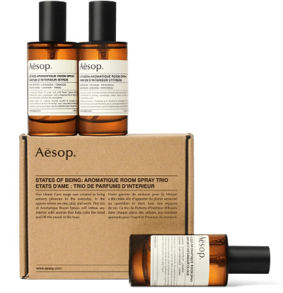 이솝(Aesop)의 ‘아로마틱 룸 스프레이 트리오’는 마음 진정과 기분 전환에 도움을 주는 향기로 구성됐다. 따듯하고 우디한 향의 ‘키테라’, 달콤하면서 플로럴한 ‘이스트로스’, 기운을 북돋아주는 시트러스 향의 ‘올루스’ 등 각기 다른 계열의 아로마 3종으로 구성된 룸 스프레이 세트로 기분과 상황에 따라 어울리는 향을 골라 사용할 수 있다.