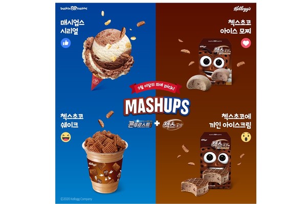 업체에 따르면 ‘매시업스 시리얼’은 콘푸로스트와 첵스초코를 조합한 아이스크림으로 바삭함과 달콤함이 특징이다. 첵스초코 쉐이크에 첵스초코 시리얼을 토핑한 ‘첵스초코 쉐이크’에선 진한 초콜릿 풍미를 느낄 수 있다는 설명이다.