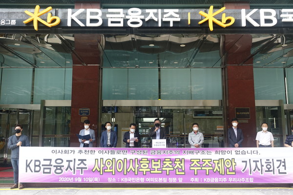 이에 앞서 KB금융지주 우리사주조합은 10일 기자회견을 열고 윤순진 서울대학교 환경대학원 교수와 류영재 써스틴베스트 대표이사를 사외이사 후보로 추천했다고 밝힌 바 있다.