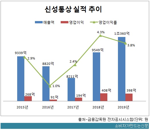 16일 금융감독원 전자공시시스템에 따르면 6월 결산법인인 신성통상은 2019 회계연(2019년 7월1일~2020년 6월30일)에 매출 1조360억 원, 영업이익 398억 원을 기록했다. 매출은 전년 보다 8.5% 증가했고 영업이익은 2.5% 감소했다.