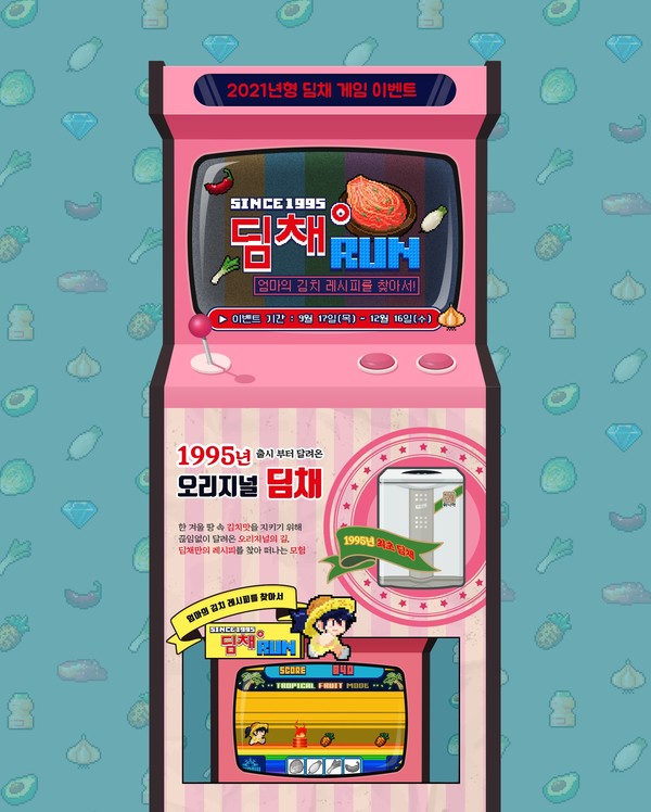 ‘1995 딤채 RUN’ 게임 프로모션은 1995년 유행한 레트로 게임을 활용해 딤채의 스토리를 친근하고 유쾌하게 즐길 수 있도록 기획됐다는 게 회사 측의 설명이다.
