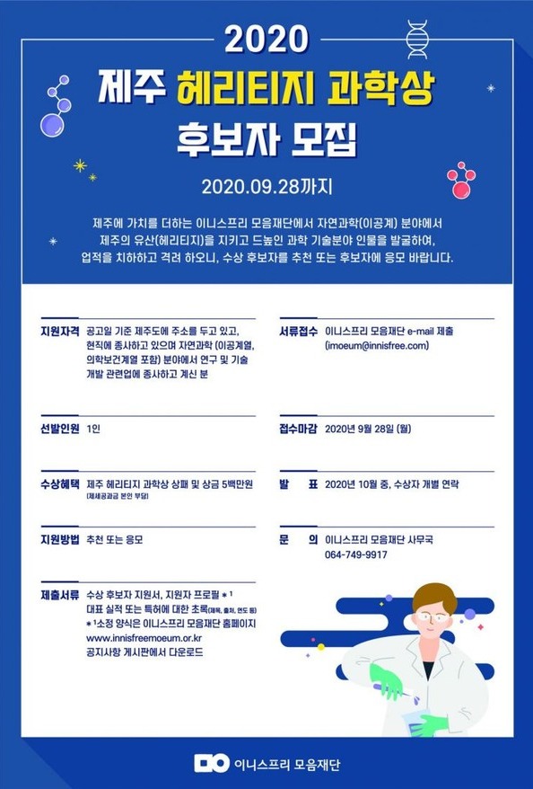 접수는 이니스프리 모음재단 홈페이지에서 소정의 양식을 내려받아 오는 28일까지 이메일로 제출하면 된다.