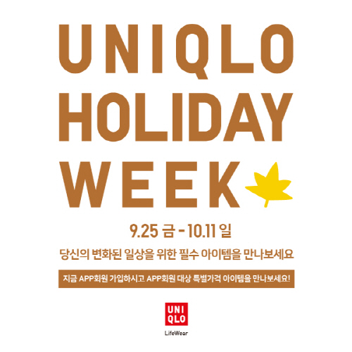 10월 5일부터 11일까지 진행하는 홀리데이 위크 2탄에는 가을, 겨울 시즌에 필요한 아이템을 선보일 예정이다. 이번 홀리데이 위크는 전국 유니클로 매장과 온라인 스토어에서 진행한다.