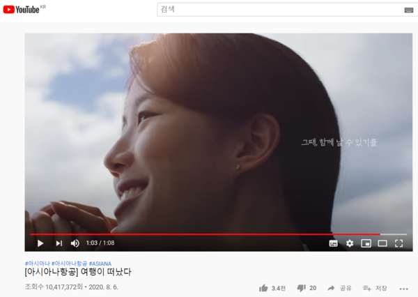 7일 아시아나항공은 사측의 바이럴 영상에 이용자의 호평이 이어지고 있다고 밝혔다. 업체에 따르면 이 영상은 코로나19로 우리 곁에서 여행이 멀어졌다는 사실을 담담하게 상기시켜 공감과 울림을 전한다.
