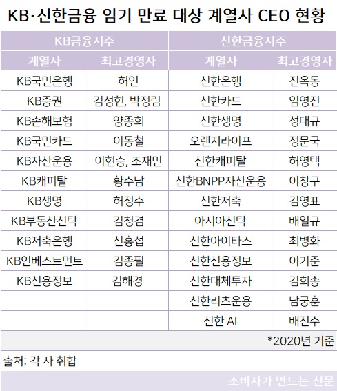 두 지주사 모두 은행장 연임 결과가 이후 다른 계열사 수장의 인사 향방에 직접적인 영향을 미칠 것으로 전망된다.
