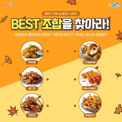 이벤트 참여는 ‘뿌링클’, ‘골드킹’, ‘맛초킹’, ‘맵소킹 등 bhc의 치킨 메뉴와 어울리는 사이드 메뉴 최고의 조합을 선택해 간단한 이유와 함께 BSR 공식 블로그 또는 페이스북 이벤트 게시글에 댓글을 남기면 자동 응모되는 방식이다.