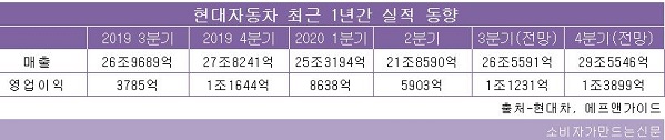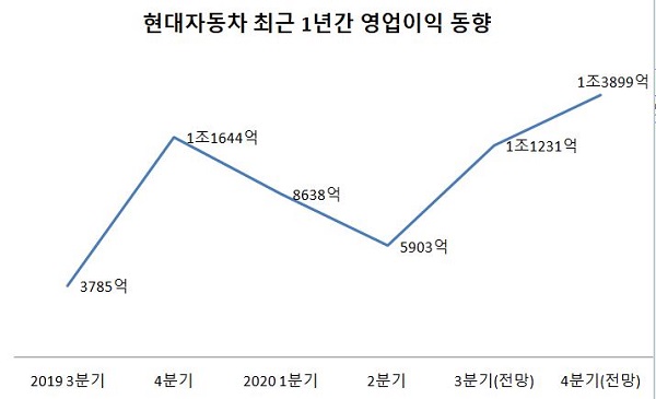 코로나19로 인한 산업 불황에도 내수, 글로벌 판매가 호조를 보이고 있는데다 연이은 신차 출시도 반응이 고르게 좋아 4분기까지는 높은 영업이익을 기대해볼 만하다는 업계의 평가다.