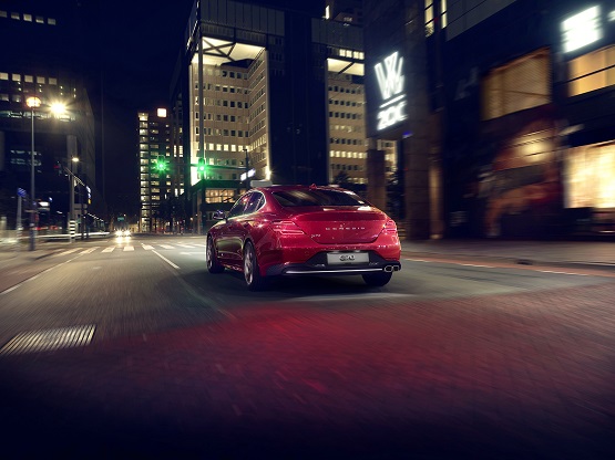 후면부는 쿼드램프로 제네시스의 정체성을 명확하게 표현했으며 듀얼 머플러(좌ᆞ우 배기구)와 차체와 동일한 색상의 디퓨저(Diffuser)로 고성능 세단의 모습을 완성했다.