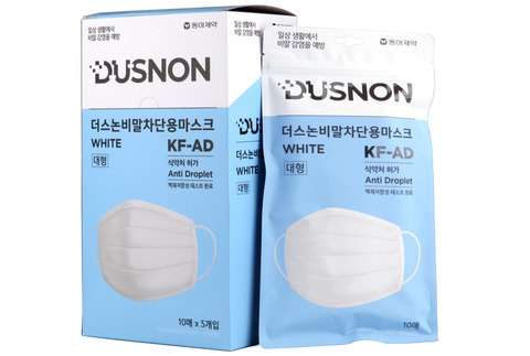 더스논비말차단용 마스크 KF-AD는 식품의약품안전처로부터 미세 물방울 차단을 의미하는 KF-AD 등급의 품목허가를 받은 의약외품으로 국내에서 제조·생산되고 있다. 비말, 미세먼지 등으로부터 호흡기 보호에 도움을 주는 3중 구조의 MB 필터를 적용했다. 액체 저항성, 유해물질 불검출 시험 등 비말차단 마스크 시험 기준도 통과했다.