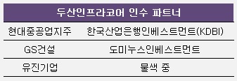두산인프라코어는 지난달 28일 두산중공업이 보유한 지분 36.3%에 대한 예비입찰을 실시했고 지난달 말부터 지난 21일까지 현대중공업지주, 유진기업, GS건설 등이 차례로 인수 의사를 밝혔다. 현재 이들 3곳의 전략적투자자(SI)들과 MBK파트너스, 글랜우드PE, 이스트브릿지 등 재무적 투자자(FI) 등 총 6곳이 이달 말까지 인수를 위한 실사를 진행 중에 있다. 이후 인수전에 참여한 투자자들은 본입찰에 나설지 결정하게 된다.