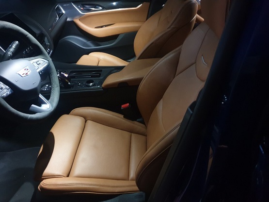 대시보드에는 돌출된 형태로 디자인된 10인치 CUE 인포테인먼트 디스플레이가 자리한다. 물리 버튼의 비율이 높아졌는데 버튼이 많아 처음에는 다소 헤맬 수 있다. 터치 감도는 훌륭하다. 통풍시트도 3단계로 설정돼있어 편하다. 백보드는 역시 캐딜락 특유의 리어카메라 미러가 설치돼있어 각도, 밝기, 원근 조절이 가능해 편하다. 스마트폰 무선 충전 기능 위치도 딱 좋은 위치에 놓여 있다.