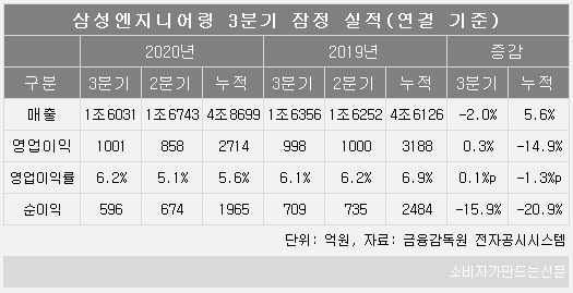 삼성엔지니어링 측은 코로나19 등 불확실한 대외환경에도 800억 원대 초반의 시장 전망치를 상회한 실적을 달성했다고 밝혔다.