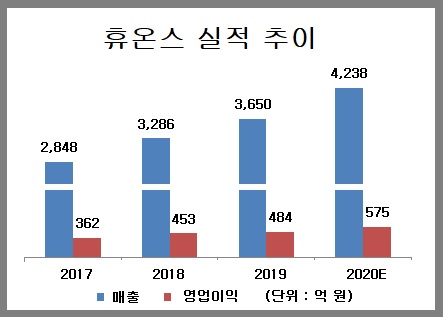 휴온스 관계자는 “글로벌 토털 헬스케어 기업이라는 목표달성을 위한 사업다각화로 2004년부터 지난해까지 회사 매출은 연평균 18%씩 성장하고 있다”고 말했다.