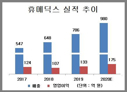 에스테틱 의료분야를 주요 사업으로 영위하는 휴메딕스는 2017년부터 올해 전망치까지 매출이 매년 26.4%씩 증가하고 있다. 영업이익도 연평균 증가율이 13.7%에 이른다.