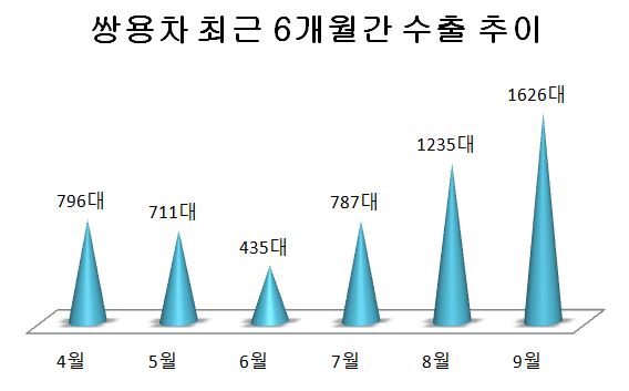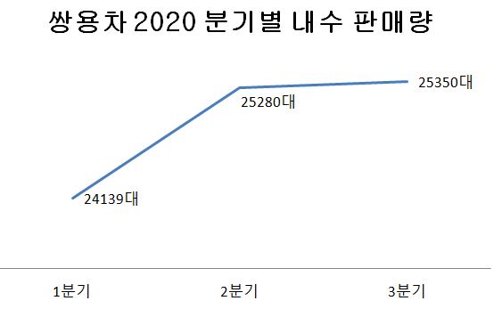 분기별 내수 판매량도 오름세다. 1분기(2만4139대)→2분기(2만5280대)→3분기(2만5350대) 소폭이지만 쌍용차 구매 고객이 많아지고 있다. 월별로 보면 6월에 435대를 판매한 뒤, 7월 787대, 8월 1235대에서 9월에는 1626대를 기록하며 하반기 들어 매월 상승세를 그리고 있다.