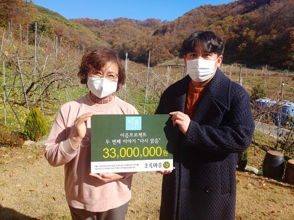 초록마을은 지난 8월 24일부터 9월 6일까지 2주간 기부 대상 상품으로 선정된 과일, 채소 판매 금액의 5%에 해당하는 금액을 기부하는 ‘다시 맑음’ 기부 프로젝트를 통해 3300만 원의 기부금을 마련했다. 기부금은 피해 규모와 복구 기간을 고려해 선정된 11개 수해 농가에게 전달됐다.