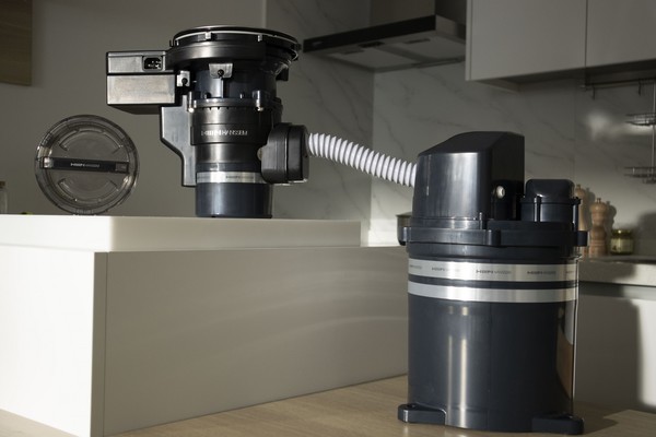 한샘 ‘오큐’는 부엌 싱크볼과 연결해 사용하는 제품으로 음식물 쓰레기를 봉투에 담아 배출하는 번거로움을 줄일 수 있다.