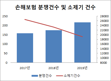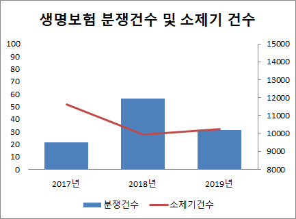보험사 분쟁건수는 매년 증가하는 추세다. 소비자가 제기하는 민원 가운데 금전 다툼이 포함돼 있는 경우에 ‘분쟁’으로 분류된다. 2017년 3만 건에 달했던 분쟁건수는 2018년 3만3000여 건, 2019년 3만5000여 건으로 매년 2000건 이상씩 증가했다.