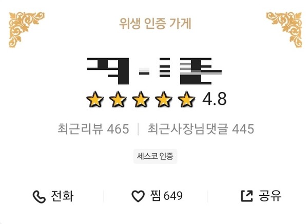 오 씨는 “정부기관 같은 공인된 곳에서 까다로운 위생 검사를 통해 공식 인증서를 준 것으로 알고 믿을 수 있는 곳로 생각했다”며 “업소명 아래에 작은 글씨로 ‘세스코 인증’이라고 써 있는 것을 보고 속은 기분이 들었다”라고 불만을 드러냈다.