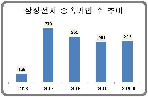 삼성전자 종속기업은 2017년 270개로 정점을 찍은 후 줄곧 감소했다. 지난해만 해도 종속회사 8개가 추가된 데 비해 20개사가 정리됐다.
