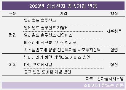 삼성전자는 올해 미래성장사업으로 삼고 있는 5세대 이동통신(5G)과 시스템 반도체 관련한 기업 등 5개사를 새로 인수하거나 설립했고, 경영효율화 차원에서 3개사는 청산했다.
