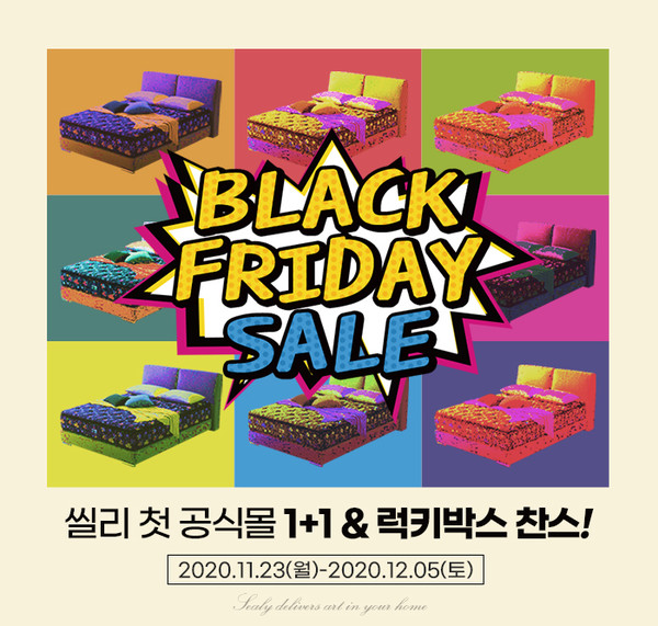 씰리침대에 따르면 이번 세일은 씰리 공식 온라인 스토어에서 처음 열리는 행사로 매트리스 1+1 이벤트부터 균일가 럭키박스까지 다양한 내용으로 구성됐다.