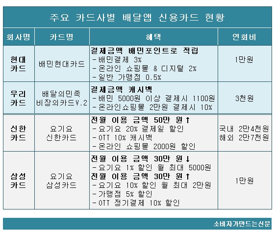 앞서 지난 16일에는 신한카드와 삼성카드가 배달앱 '요기요'와 손잡고 카드를 출시했다.