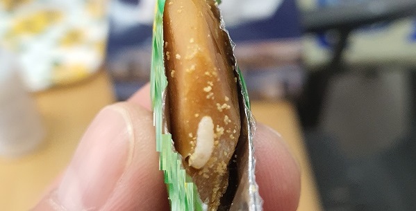 직장 동료들과 간식을 나눠 먹던 중 캐러멜에서 애벌레를 발견한 이 씨는 제조사 고객센터에 알리고 발생 원인과 재발 방지를 위한 대책을 듣고자 했으나 제조사 측은 "유통과정 중 애벌레가 포장지를 뚫고 들어 갔을 것"으로 추측하면서 "제조상 벌레 알이나 성충 이물 제어 장치 및 검사 기준은 없다"고 답했다.