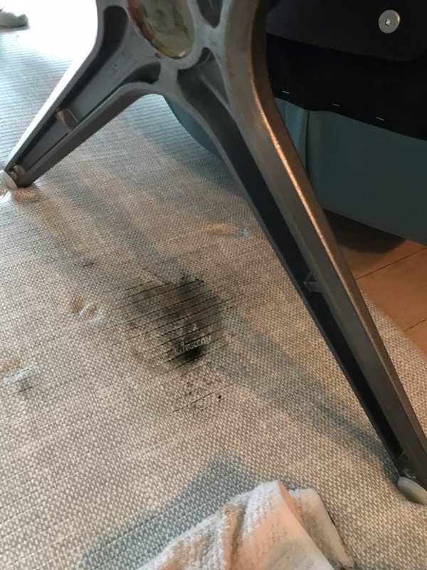 구입한지 한 달쯤 됐을 즈음 의자에서 검은 쇳가루와 기름이 흘러내리는 것을 발견했다. 제품하자를 이유로 업체 측에 AS를 요구했으나 “전시상품은 무상수리가 불가하니 25만 원을 지불하고 수리해라”는 예상치 못한 답이 돌아왔고 비용 부담에 결국 수리를 포기했다.