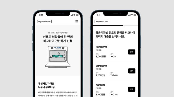 이에 대해 현대카드 관계자는 “금융권 최초로 개인사업자 전용 대출 비교 플랫폼을 론칭 했다. 앞으로도 참여기관을 확대하고 현대카드만의 차별화된 데이터 역량을 기반으로 혁신 금융 서비스를 지속적으로 출시할 계획”이라고 말했다.