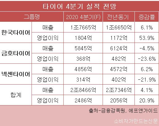 그러나 하반기 들어서는 타이어 업체들도 수요 회복에 힘입어 조금씩 실적을 회복하고 있다.