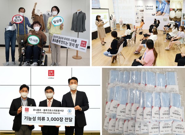 올해 유니클로는 희망브리지 전국재해구호협회(이하 희망브리지) 등과 같은 비영리단체와의 협력을 통해 코로나19 확산을 비롯해 장마와 태풍 등 예기치 못한 상황으로 어려움에 직면한 많은 지역 사회와 이웃에 실질적으로 도움이 될 수 있는 기부활동을 실시해 왔다.
