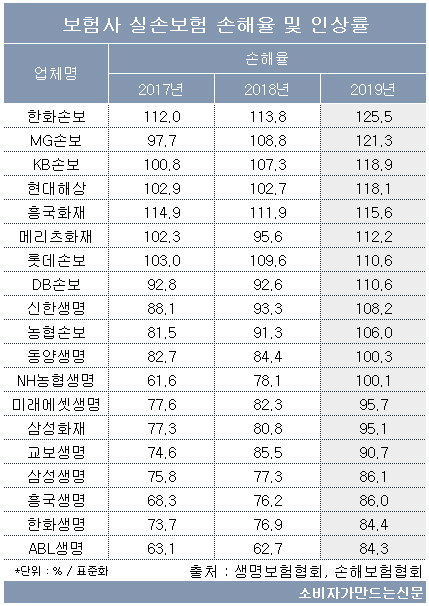 보험사들은 실손보험 손해율이 악화돼 최대 인상폭인 25%까지 올려야 한다고 주장하고 있다. 실제 보험사들의 실손보험 손해율은 100%를 넘어서고 있다.