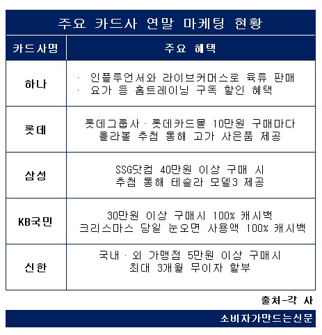 연말 시즌 소비가 늘어나는 점은 감안해 무이자 할부 지원에 나선 카드사도 있다.