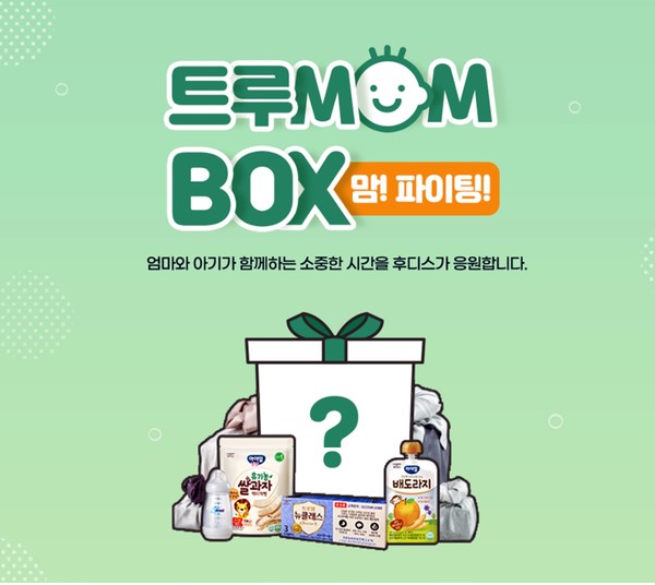 ‘트루MOM 육아응원박스’는 일동후디스 공식 홈페이지 내 팝업창을 통해 신청할 수 있다. 매월 1일에서 말일까지 생후 100일~12개월 자녀를 둔 부모를 대상으로 신청자를 모집하며 매월 100명을 선정해 박스를 전달한다.