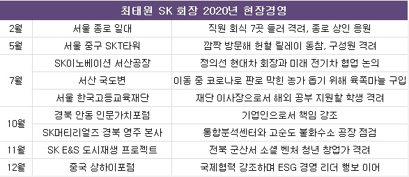 현장을 직접 방문하는 것 외에도 최 회장은 화상을 통해 코로나19 백신개발 및 해외근무 직원, SK스포츠단을 격려했다.