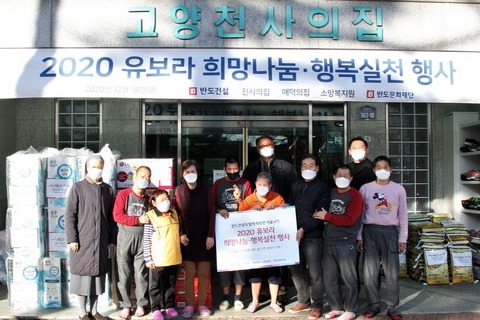 반도건설그룹은 지난 18일 경기도 고양시 덕양구에 위치한 장애인 생활시설 '천사의집'에서 '반도건설과 함께하는 2020 유보라 따뜻한 겨울 나기 희망나눔, 행복실천' 행사를 진행했다고 밝혔다.