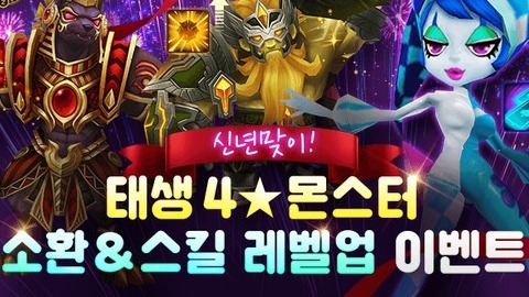 이벤트는 여러 던전 및 차원홀·아레나 등을 플레이하거나 3성 이상 몬스터를 소환해 포인트를 모으는 방식으로 참여 가능하다. 오는 1월 24일까지 일정 포인트를 쌓아 불·물·바람 속성을 선택해 태생 4성 몬스터를 소환하며 소환한 몬스터 중 원하는 하나를 최종으로 획득할 수 있다.