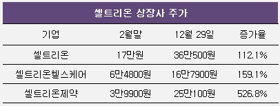 한편 2월 말 팬데믹 이후 셀트리온 상장사 3곳의 주가는 크게 오른 상태다. 셀트리온제약은 500% 이상 주가가 급등했고, 셀트리온과 셀트리온헬스케어도 100% 이상 올랐다.