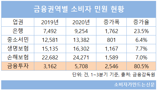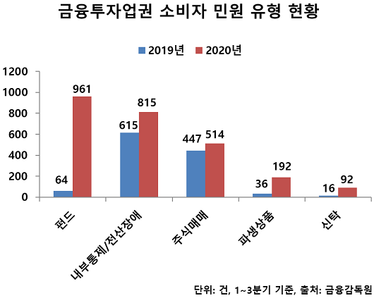 금융투자업계는 지난해 3분기까지 민원이 무려 80%대의 증가세를 보이며 은행, 보험 등을 제치고 금융업권 중 증가율 1위의 불명예의 자리에 오르기도 했다.