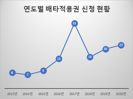 7일 생명보험협회와 손해보험협회에 따르면 지난해 1년간 보험사들이 신청한 배타적사용권은 생명보험 7건, 손해보험 15건 등 총 22건으로 지난해 20건 대비 10% 증가했다.