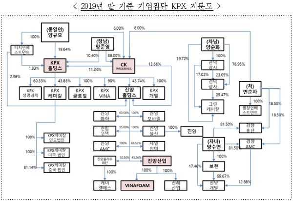 공정위는 진양산업으로부터 PPG 수출 물량을 이관받으며 충분한 현금 유동성을 확보한 CK엔터프라이즈가 그 수익을 기업집단의 지주회사인 KPX홀딩스 지분 확보에 활용함으로써 양준영 부회장의 KPX그룹 경영권 승계 발판을 마련했다고 봤다.