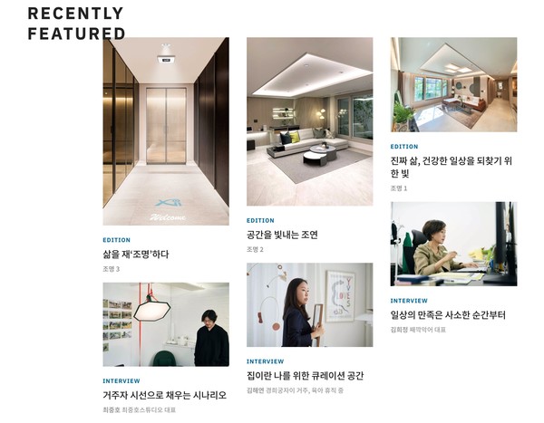 첫 번째 인터뷰 대상은 송도자이 크리스탈오션에 적용될 아이돌봄 서비스 ‘째깍악어’ 김희정 대표, 자이 부대시설 통합 디자인을 맡은 ‘최중호 스튜디오’ 최중호 대표, 경희궁자이 김해연 입주민이다. 에디션은 ‘테라스’, ‘조명’을 주제로 한다.