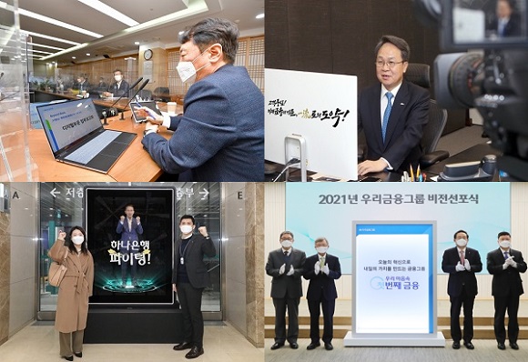 진옥동 신한은행장은 신년사를 통해 "지금 당장 서둘러야 하는 것은 디지털 전환이며 성공 여부에 조직의 명운이 달렸다"며 은행장 직속 디지털 혁신단을 구축했고 허인 KB국민은행장도 "전통은행의 틀을 과감히 깨고 디지털 금융플랫폼 기업으로 환골탈태하는 길에 승부를 걸어야 한다"고 강조했다.