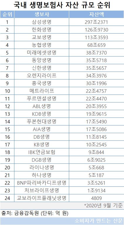 설계사 서울 비중이 가장 높은 KB생명보험은 지난 2004년 국민은행과 ING그룹이 합작해 설립한 방카슈랑스 전문 생명보험사다. 작년 9월 말 KB생명의 자산은 10조2545억 원으로 대한민국 24개 생명보험사들 가운데 17위에 그쳤다.